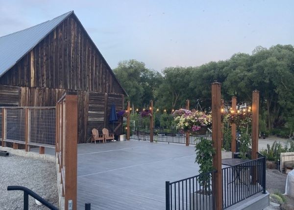 The Deck and surrounding area is centered on a century old leaning barn, adding a touch of history and charm. With views overlooking the nursery, this space is ornate with bistro lights, umbrellas, bistro style tables & chairs, and fountains to create a relaxing and inviting ambiance. This space can hold 104 seated or 200+ standing.