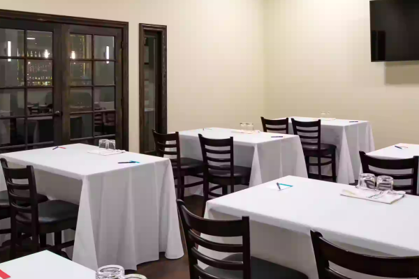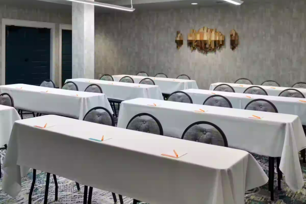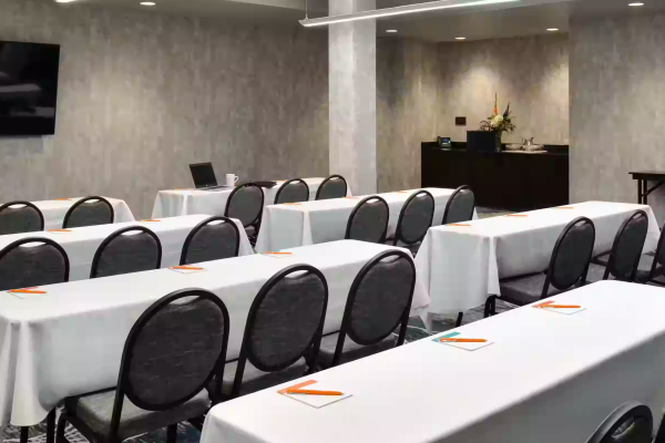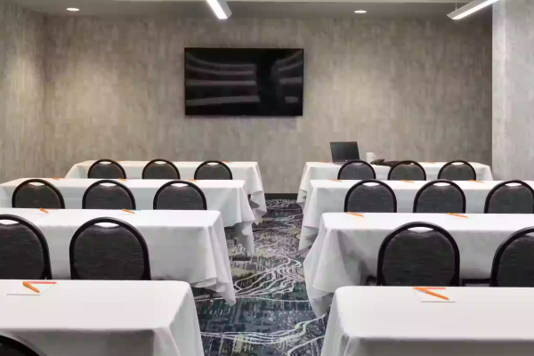 The Otis Meeting room at Hotel Indigo is the next place for your small or medium sized meeting! Located on the first floor near the hotel lobby; it has a TV readily available for guests' slideshow presentations. There is space for food and beverage. There are two pillars in the room, and an exit door that goes outside.