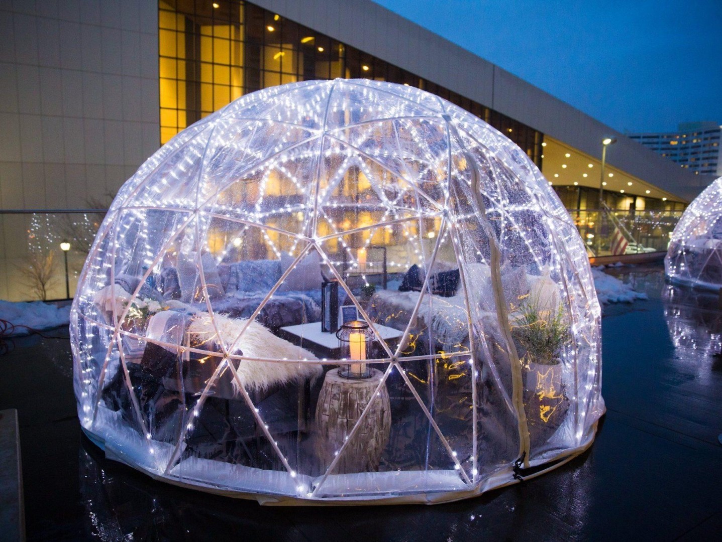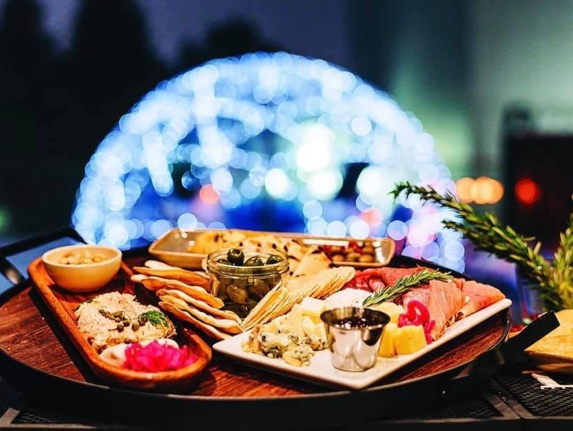 During the winter months, 6 igloos are added to the terrace for the ultimate winter experience. Enjoy cocktails and charcuterie boards from inside your see-through, heated igloo. Seasonal (weather permitting) Summer Patio May – September & Winter Igloos November – February.
