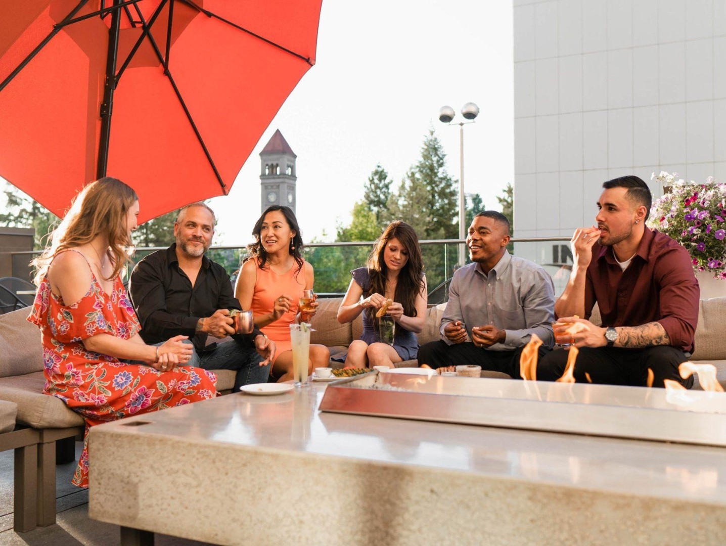 Perched atop The Davenport Grand Restaurant & Lounge sits The Grand Terrace Bar––an outdoor, open-air oasis where you can enjoy small bite appetizers with a refreshing cocktail, frozen drink, wine or ice cold beer amidst tranquil breezes and Riverfront Park views. As the evening cools, multiple gas fire pit tables soften the mood and keep guests comfortable.