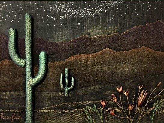 When she crochets rugs from all recycled fabrics Cherylee saves bits and pieces for use in mixed media paintings. This method, along with using only what is already on hand, is how she has created her new series, Threadscapes II ~ the options are excitingly endless.