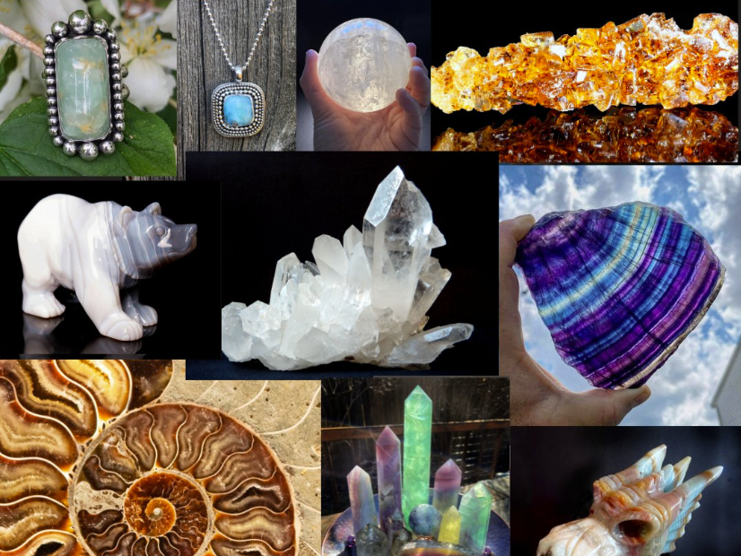 Rocks, crystals, minerals, fossils, jewelry, and lapidary supplies.